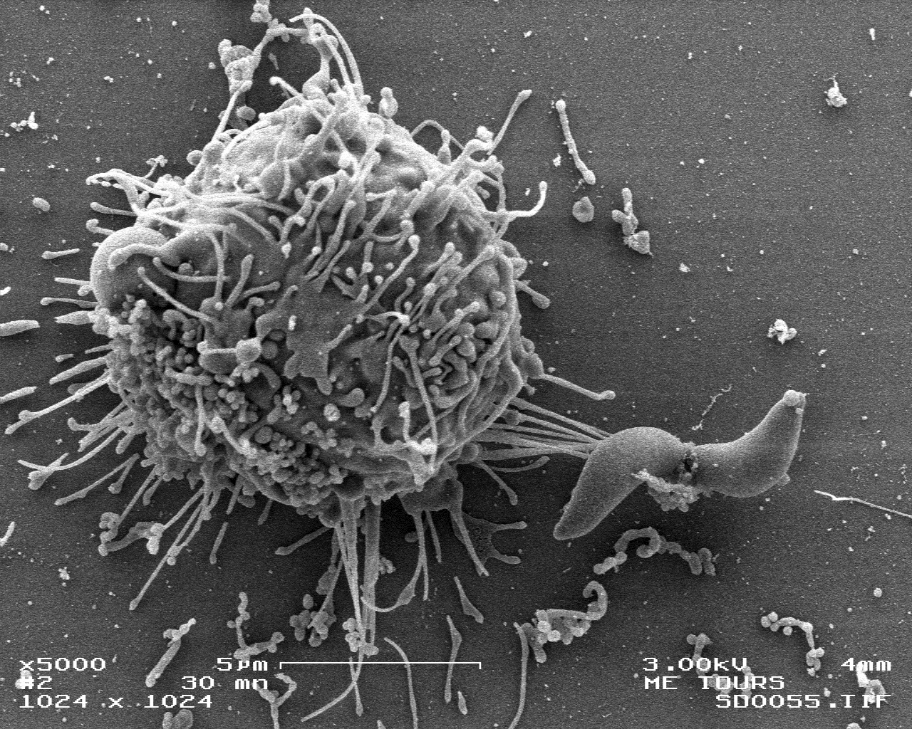 L’équipe BioMAP de l’UMR ISP Université de Tours -INRAe 1282 a développé un nouveau traitement immunothérapeutique innovant contre le cancer basé sur l’utilisation du protozoaire, Neospora caninum, organisme eucaryote unicellulaire intracellulaire non infectieux pour l’Homme. Leurs études ont montré l’efficacité de cet agent en immunothérapie anti-tumorale. En effet, de très fortes régressions tumorales ont été observées en modèle murin de lymphome thymique et en modèle de tumeur humaine suite à l’injection intra-tumorale ou à distance de ce protozoaire. Les mécanismes d’action passent par une lyse des cellules tumorales, l’activation du système immunitaire inné et adaptatif et la rupture de l’immunosuppression du microenvironnement tumoral suivi d’une élimination totale de l’agent. Ces résultats de protection ont été optimisés via la construction d’une souche de N. caninum capable de sécréter l’IL-15 humaine associée à la sous-unité alpha de son récepteur conduisant à une disparation totale et définitive des tumeurs. Ces résultats mettent en évidence le potentiel anticancéreux de N. caninum comme un agent immunothérapeutique extrêmement efficace et non toxique capable d'être modifié génétiquement afin d'exprimer en surface ou de sécréter des biomédicaments biologiques. Cette technologie innovante de recherche permet d’identifier les possibilités d'utilisation cliniques de Neospora caninum comme protozoaire oncolytique en médecine humaine qui pourrait participer au renouvellement actuel des thérapies anti-cancéreuses et améliorer la qualité de vie des patients.
